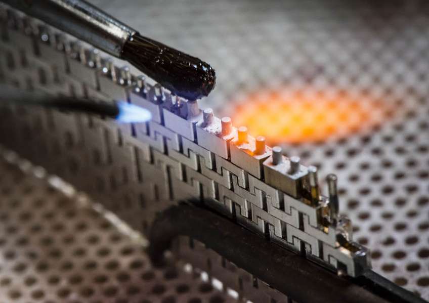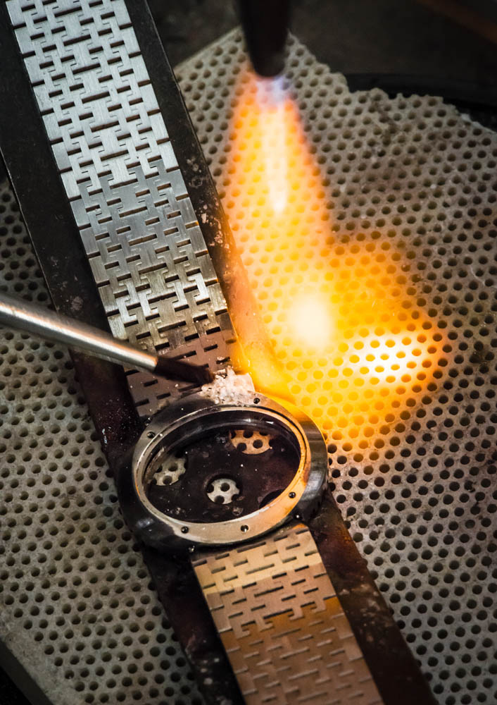 Opération de soudage du bracelet et du boîtier avec les paillons