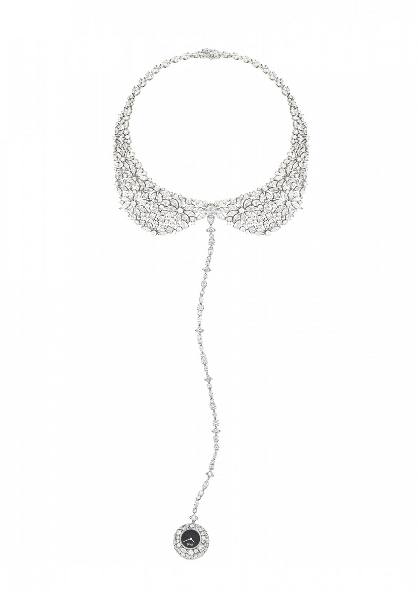 White gold High Jewellery necklace set with diamond with watch pendant from the Extremely Piaget collection